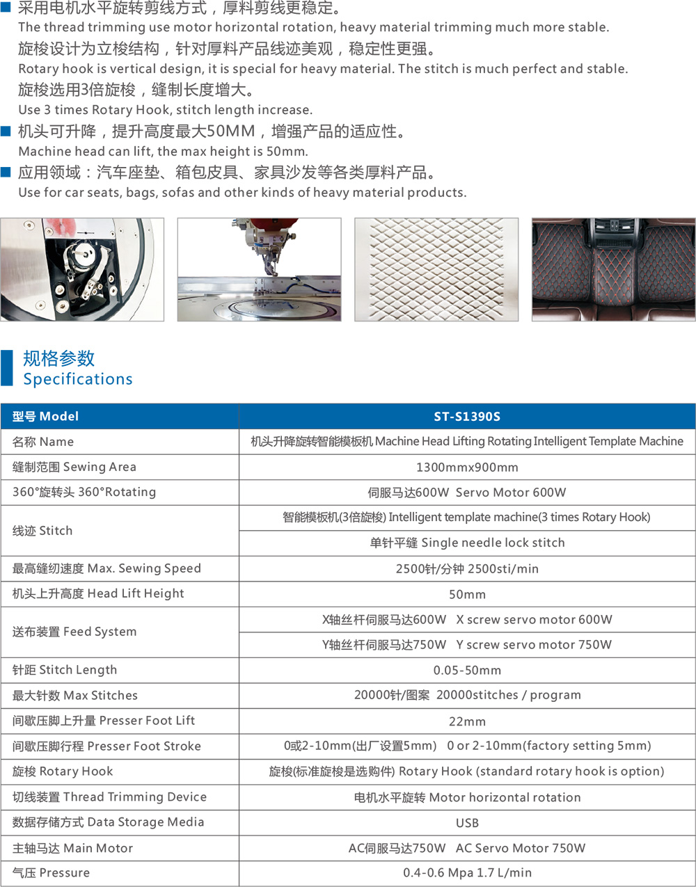 應(yīng)用領(lǐng)域:汽車座墊、箱包皮具、家具沙發(fā)等各類厚料產(chǎn)品。