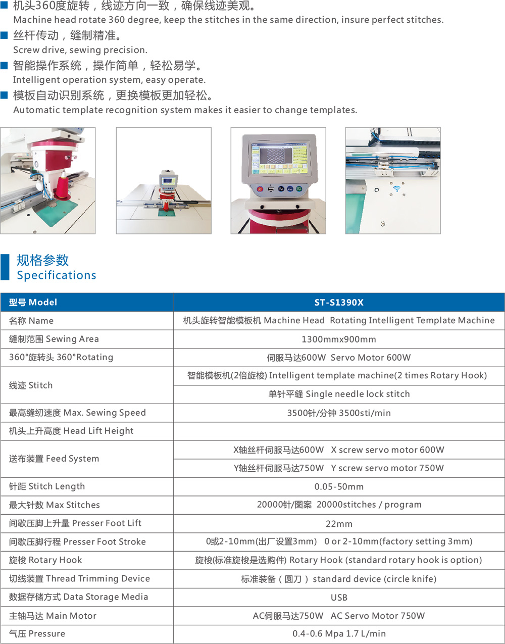 機頭360度旋轉(zhuǎn),線跡方向一致,確保線跡美觀。