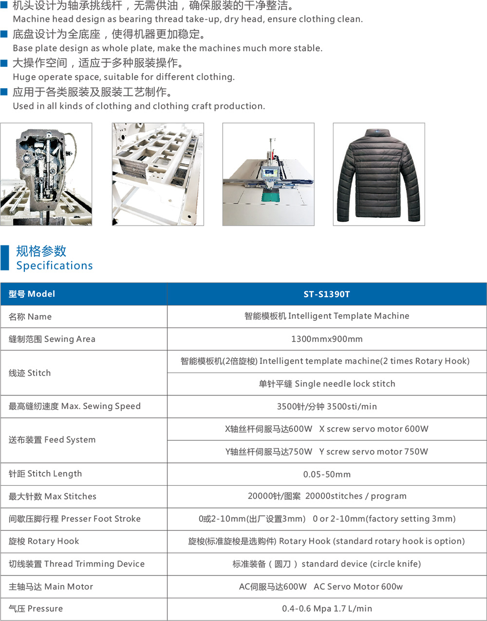 機(jī)頭設(shè)計(jì)為軸承挑線桿,無需供油,確保服裝的干凈整潔。